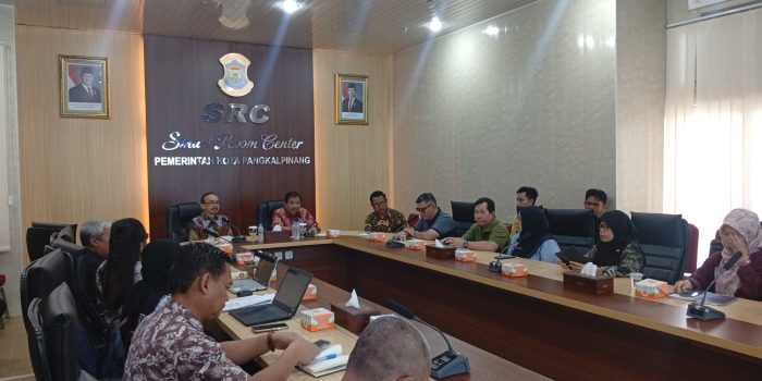 PANGKALPINANG – Wali Kota Pangkalpinang, Prof. Saparudin, memimpin rapat pembahasan Komunikasi, Informasi, dan Edukasi (KIE) pengelolaan sampah di Smart Room Center (SRC),