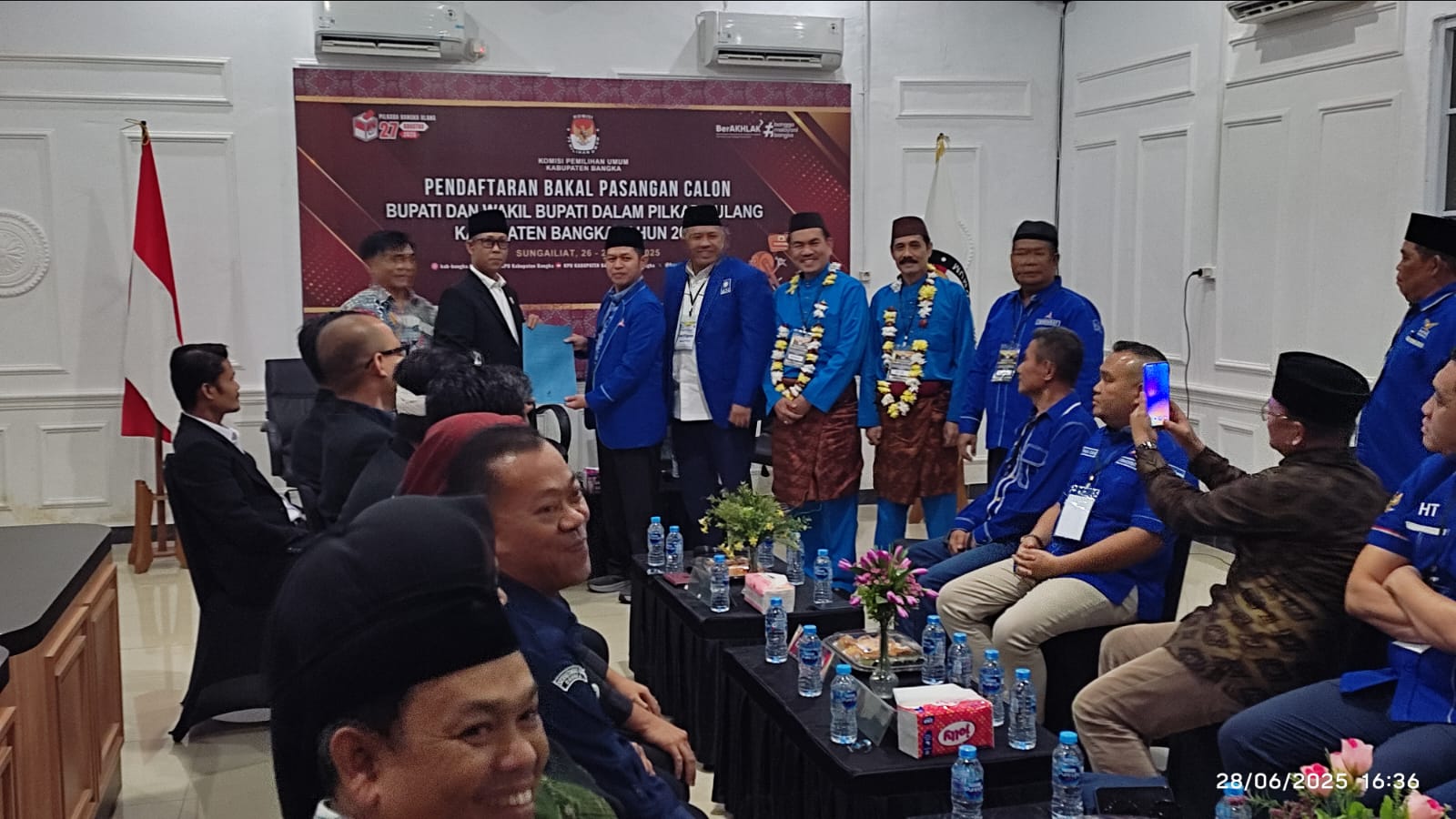 Paslon Naziarto-Usnen saat mendaftar ke KPU Kabupaten Bangka, Sabtu (28/06/2025) sore
