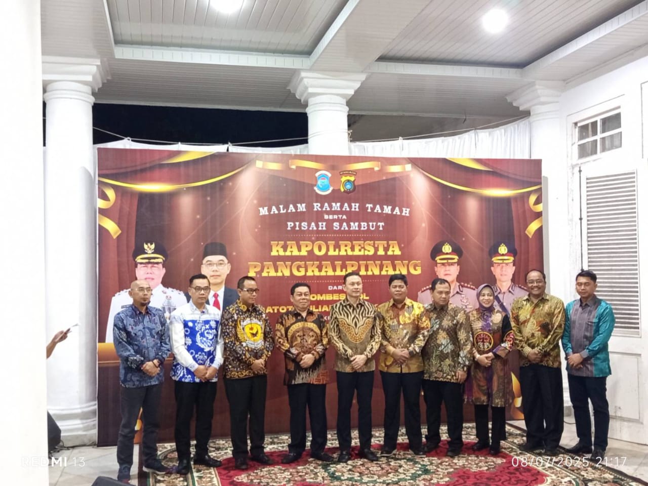 Pangkalpinang, Demokrasibabel.com – Malam ramah tamah dalam rangka pisah sambut Kapolresta Pangkalpinang yang baru ke Kapolresta sebelumnya dilaksanakan di Rumah Dinas Wali Kota Pangkalpinang, Selasa, (8/7/2025) malam.