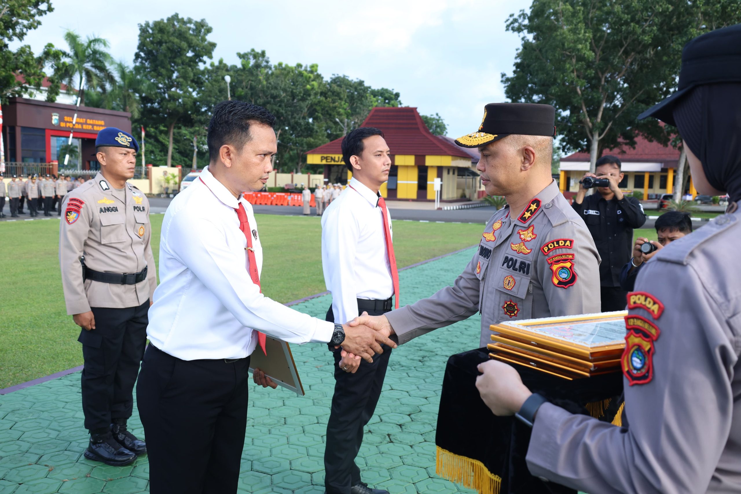 Pemberian penghargaan dilangsungkan pada saat apel pagi dihalaman Mapolda, Selasa (8/7/25). Dalam apel tersebut, turut dihadiri Wakapolda Brigjen Pol Tony Harsono, para Pejabat Utama Polda serta seluruh personel dan ASN Polda Babel.