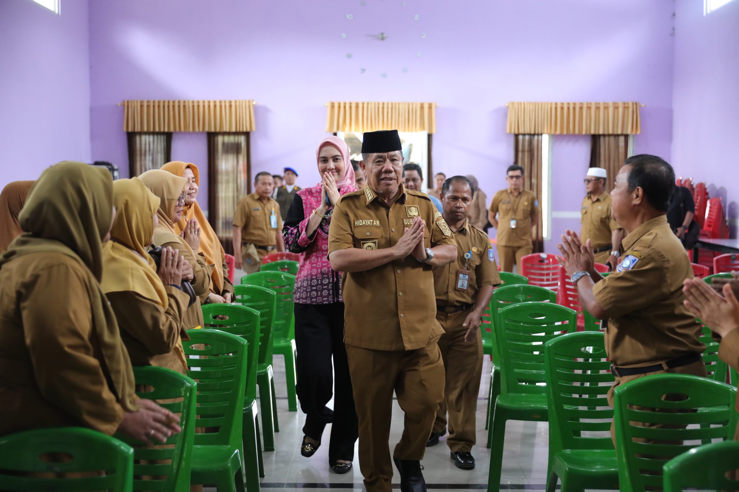 Dalam kunjungannya, Gubernur Hidayat menegaskan pentingnya netralitas Aparatur Sipil Negara (ASN), khususnya guru dan tenaga pendidik.