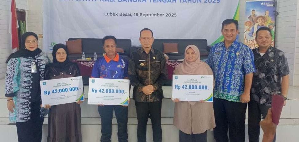 Komitmen tersebut ditandai dengan peluncuran Program Perlindungan Jaminan Sosial Ketenagakerjaan, bagi pekerja perkebunan sawit oleh Bupati Bangka Tengah, Algafry Rahman, di Gedung Serbaguna Kecamatan Lubuk Besar, Jumat (19/09/2025).
