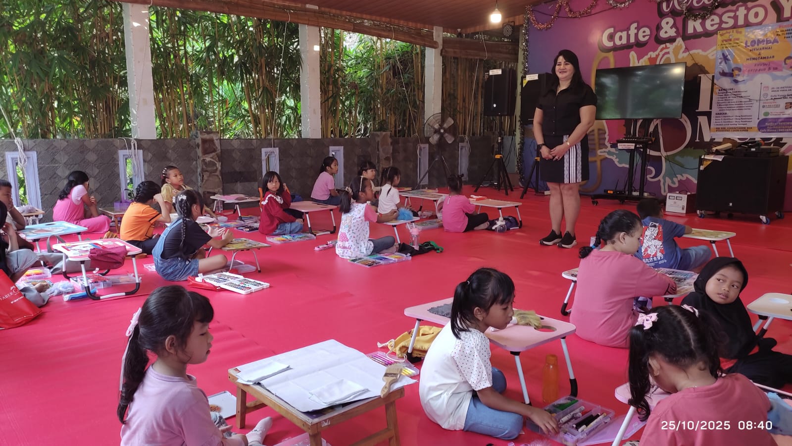 SUNGAILIAT, DEMOKRASIBABEL.COM – Kembangkan kreativitas anak, 40 peserta ikuti lomba mengambar dan mewarnai di Resto Yun Su Sungailiat Kabupaten Bangka, Sabtu (25/10/2025).