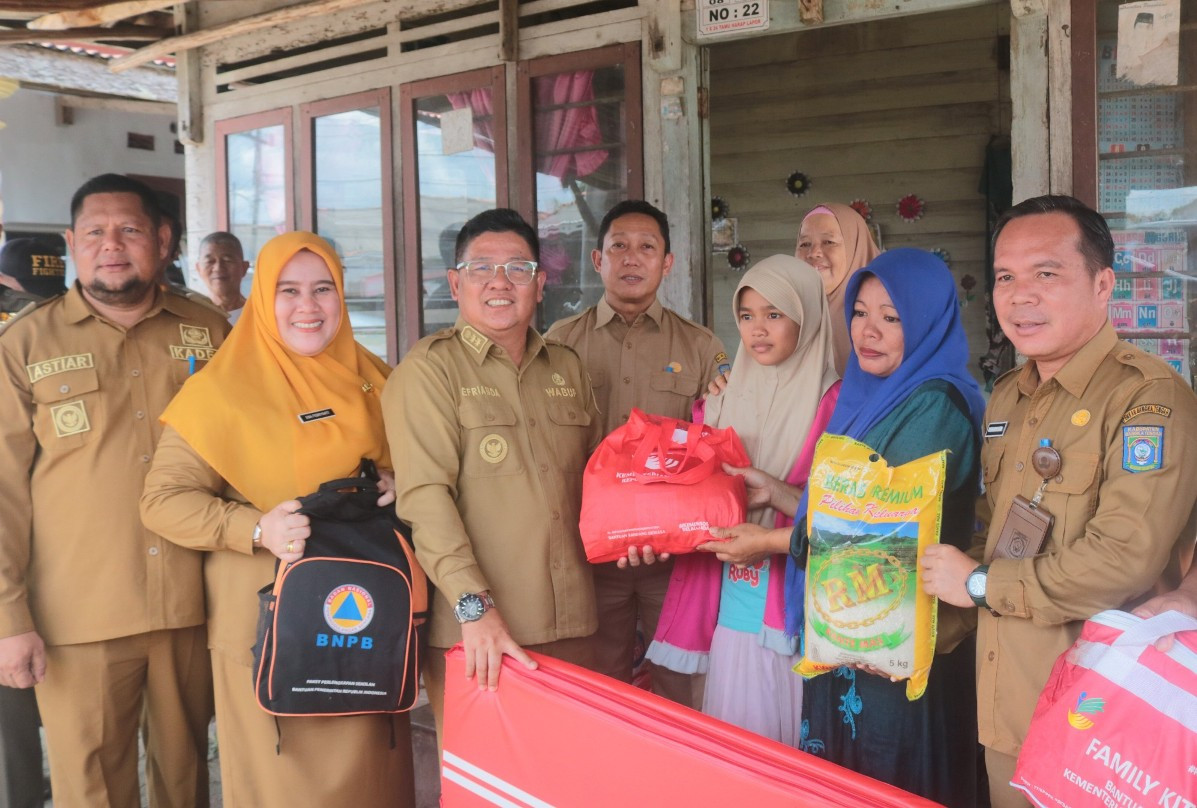 Wakil Bupati Bangka Tengah, Efrianda, didampingi sejumlah Kepala OPD terkait, menyerahkan bantuan berupa perlengkapan dasar sehari-hari kepada Sila, korban kebakaran. Bantuan ini diharapkan dapat meringankan beban keluarga yang sedang tertimpa musibah.