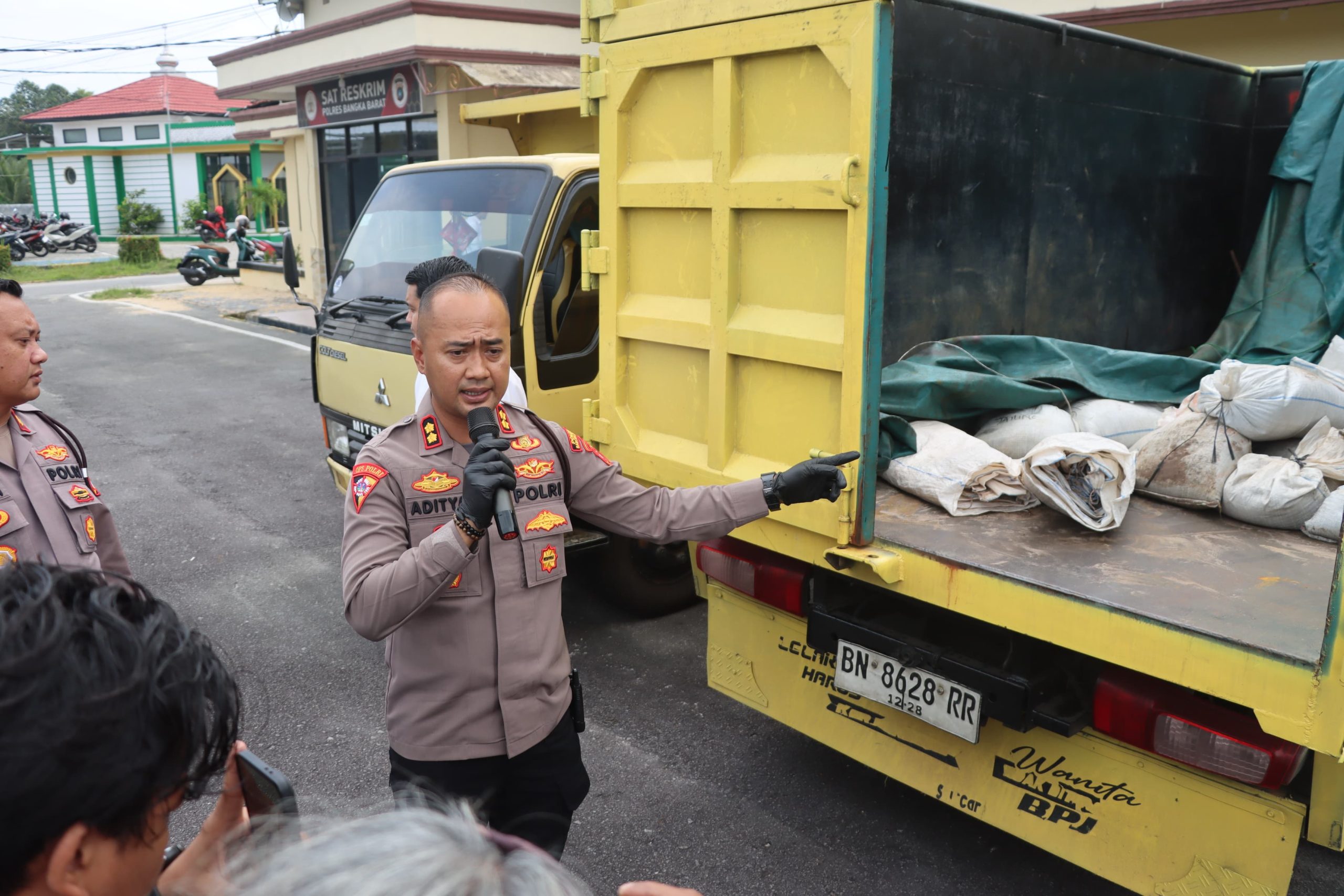 Kendati demikian, Polres Babar berhasil mengamankan barang bukti diantaranya 2 truk, 2 perahu pancung, speed boat hingga 20 karung tailing (timah) sisa pengolahan.