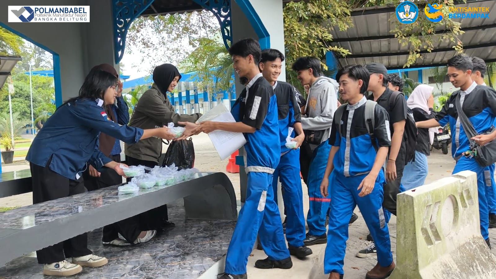 Pangkalpinang, Demokrasibabel- Pengurus Badan Eksekutif Mahasiswa (BEM) Politeknik Manufaktur Negeri Bangka Belitung (Polman Babel) menggelar aksi sosial dengan membagikan takjil kepada mahasiswa dan pengguna jalan di sekitar kampus, Senin (2/3/2026).