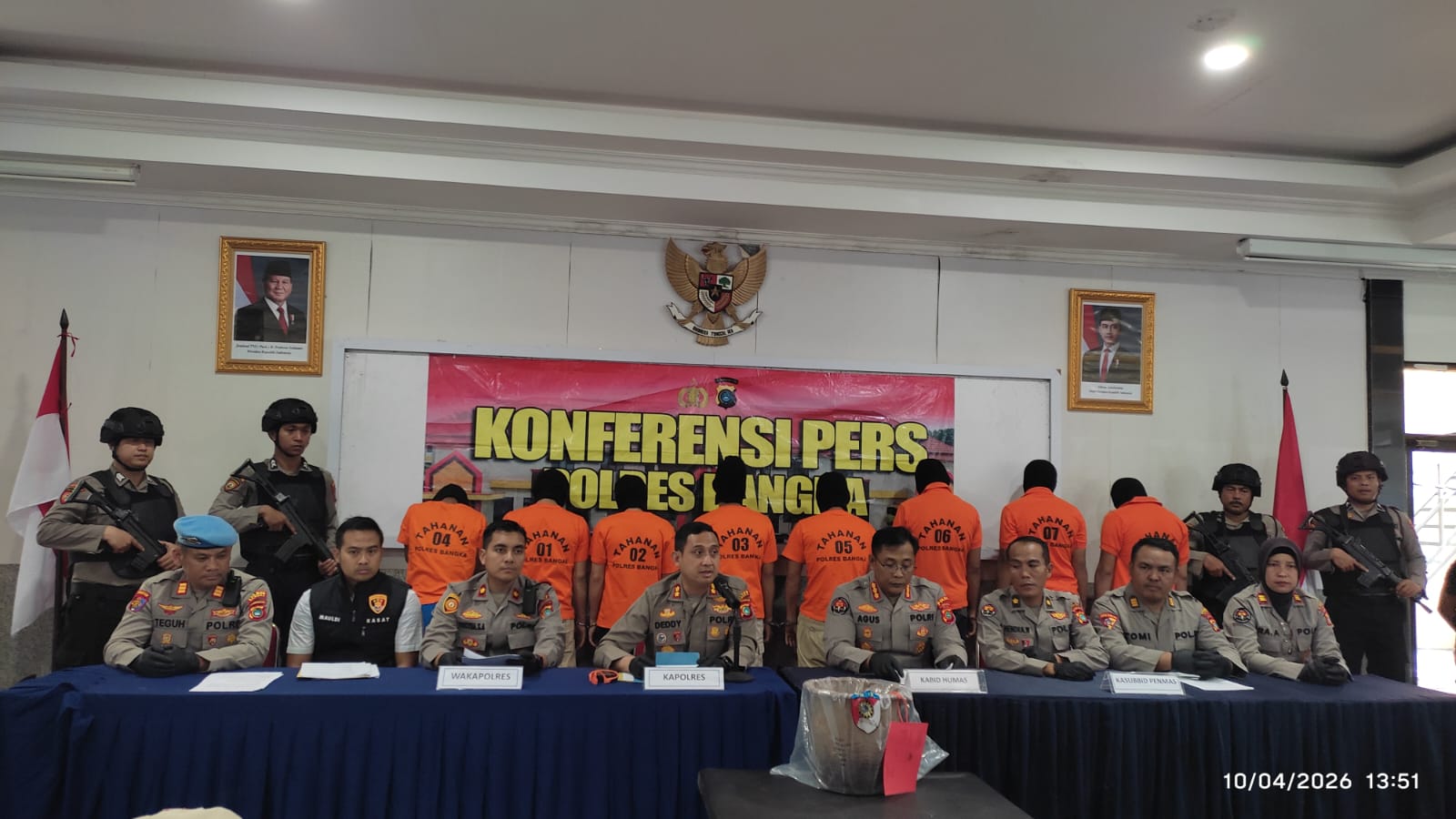 Hukuman tersebut disampaikan Kapolres Bangka, AKBP Deddy Dwitya Putra saat Konferensi Pers di Aula Tri Brata Mapolres Bangka, Jumat (10/04/2026).