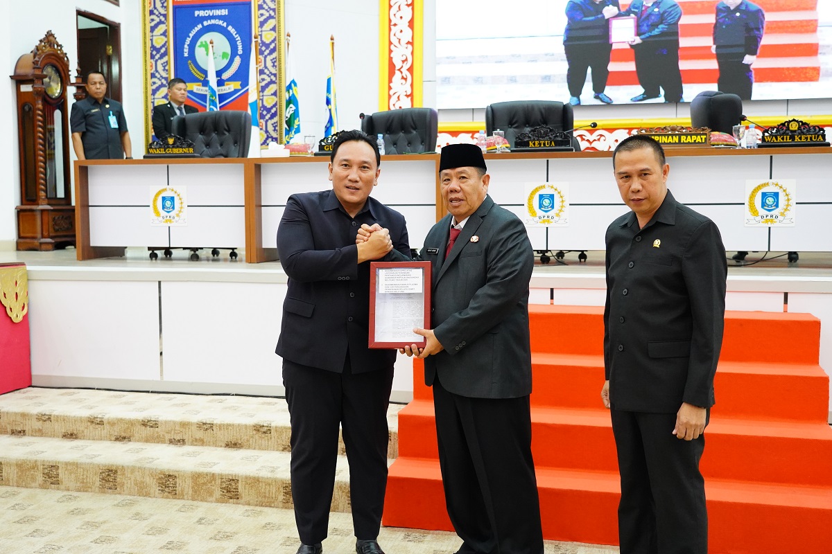 Rapat berlangsung di ruang paripurna DPRD Babel, Senin (27/4/2026), dipimpin Wakil Ketua DPRD Babel Eddy Iskandar, didampingi Ketua DPRD Didit Srigusjaya dan Wakil Ketua Edi Nasapta, serta dihadiri Gubernur Babel Hidayat Arsani, anggota dewan, dan unsur Forkopimda.